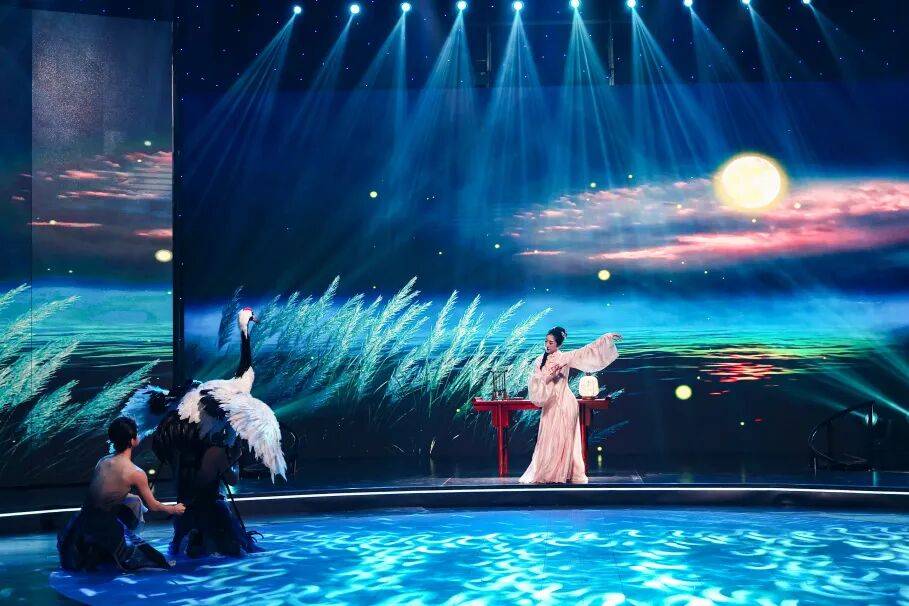 推介结束,精彩的实景片段展演随即上演。船厅演出片段惊艳亮相,二小姐、仙鹤、少年等经典人物与意象,配合精心设计的舞台灯光,生动还原夜演的雅致场景,实现古典美学与现代舞台艺术的完美融合,让在场嘉宾对“何堂月色”夜演满怀期待。