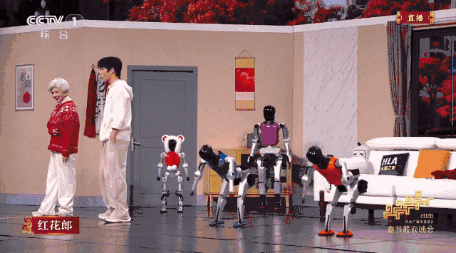 据总台编务会议成员姜文波介绍,今年的机器人深度融合了高精度激光即时定位与地图构建、集群协同控制、实时语音交互等前沿人工智能技术。在武术、语言类节目中,它们以集群化编队精准完成富有层次的队形变换及高难度动作表演,通过机器人与演员的实时交互,展现人类创意与人工智能协作的无限可能,充分展示我国机器人创新发展的蓬勃气象。